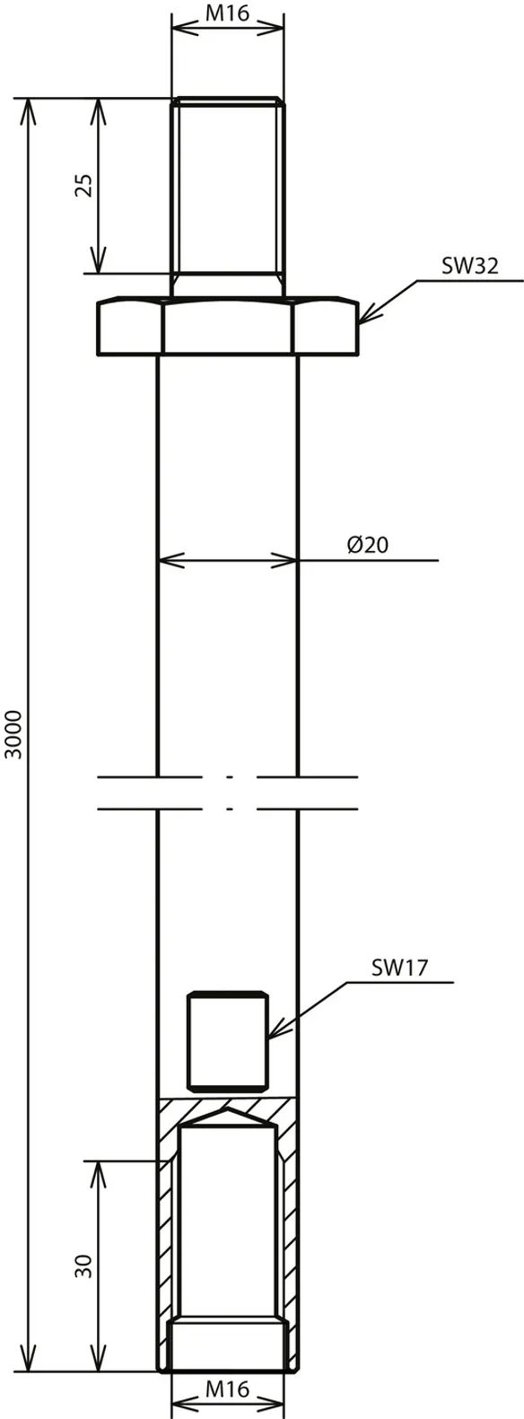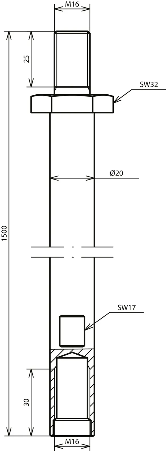 artikelnr. 621150 TE 20 1500 M16 STTZN