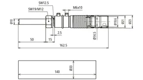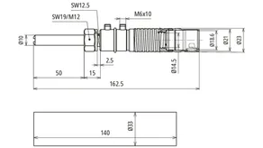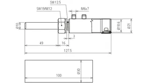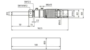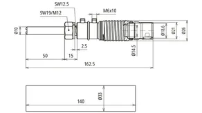 | Tilslutning | Bolt Ø10 mm, L 50 mm med gevind M12 med fjederskive |