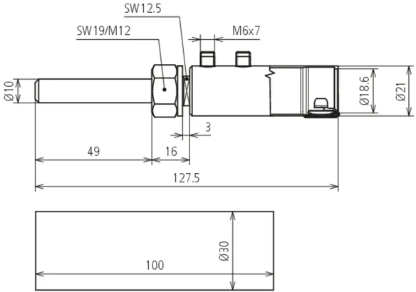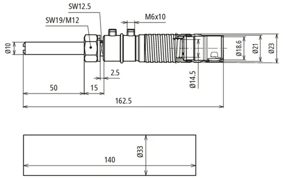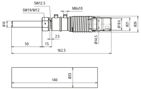 | Tilslutning | Bolt Ø10 mm, L 50 mm |