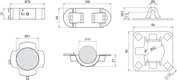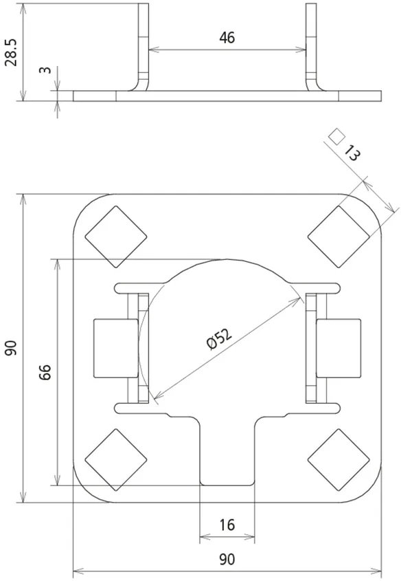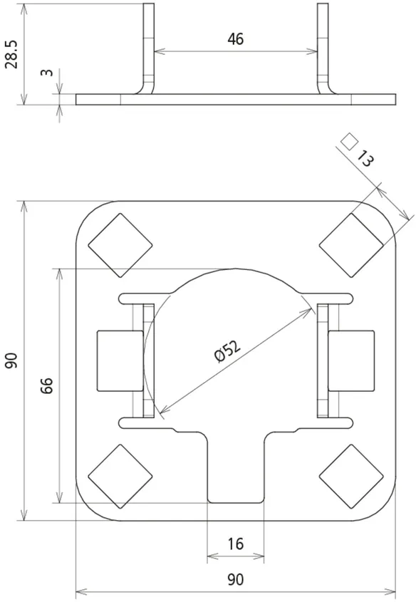 | Fastgøring tilslutningsplade | Firkanthul 13 mm |