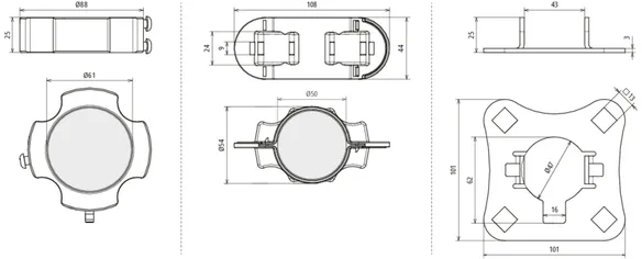 Disse tilslutningselementer kan bruges ved støtterør til HVI light plus.