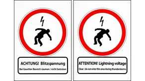 "ACHTUNG! Blitzspannung Bei Gewitter Bereich räumen / nicht betreten"