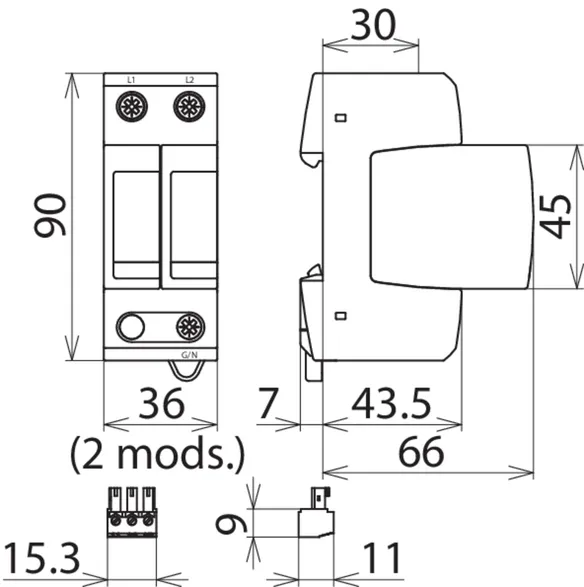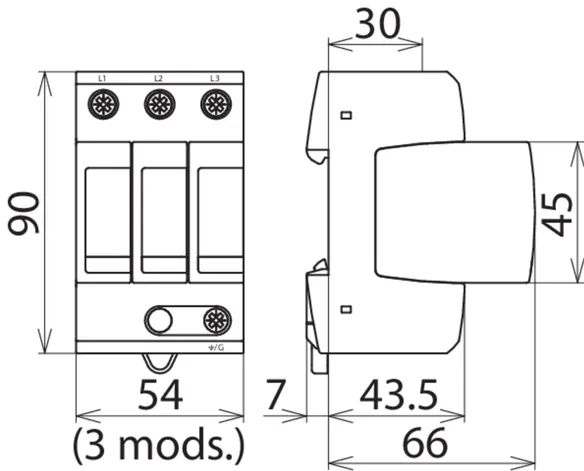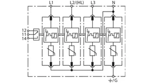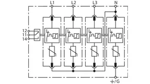 | Max. continuous operating voltage AC [L-N] / [L-G] / [L-L] / [N-G] (MCOV) | 510 V a.c. / 690 V a.c. / 1020 V a.c. / 180 V a.c. |