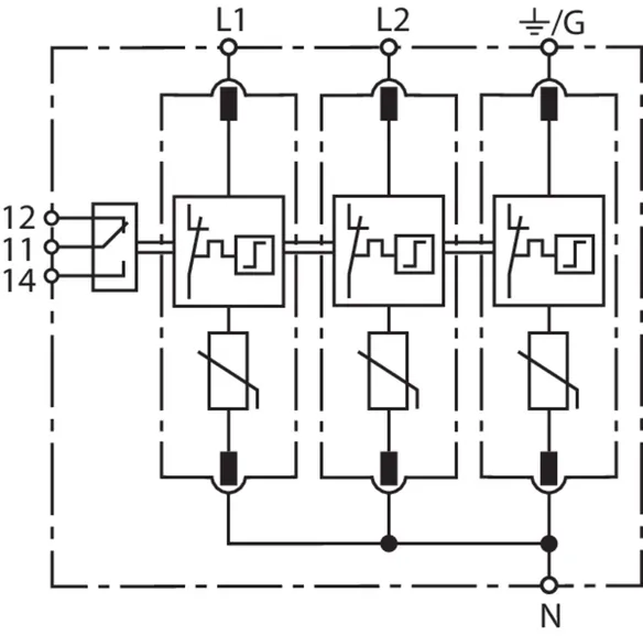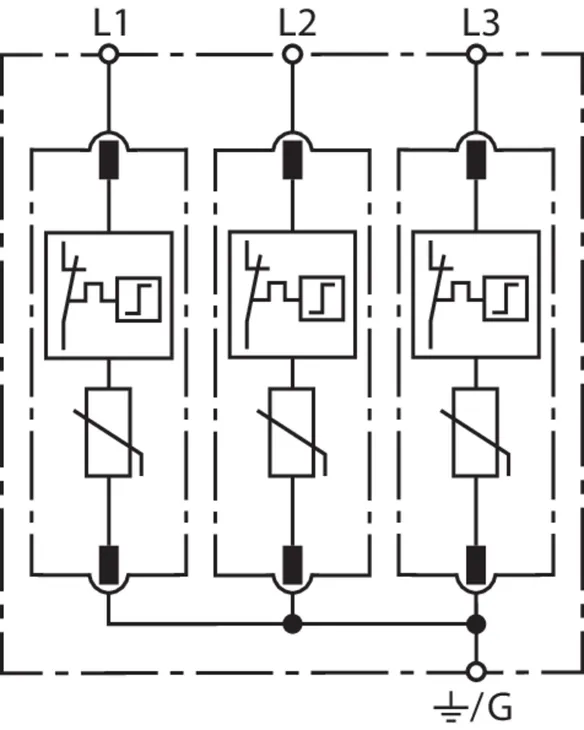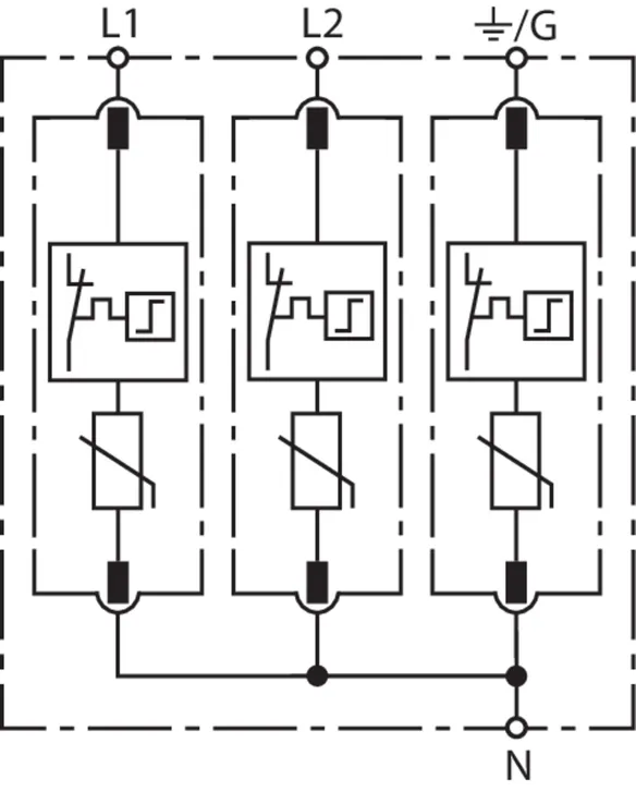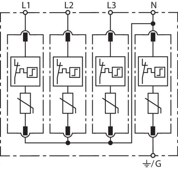 | Max. continuous operating voltage AC [L-N] / [L-G] / [L-L] / [N-G] (MCOV) | 385 V a.c. / 565 V a.c. / 770 V a.c. / 180 V a.c. |