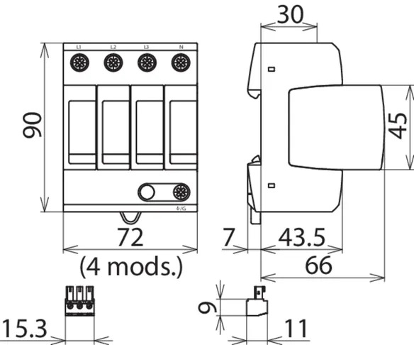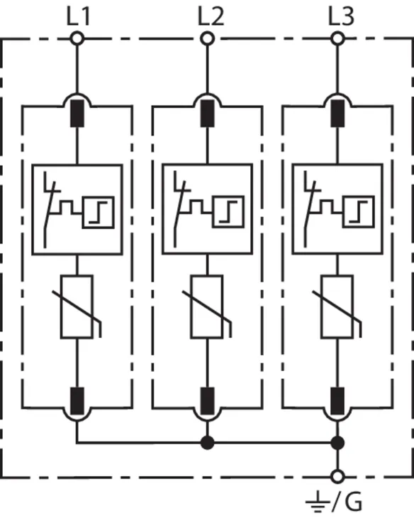 | Max. continuous operating voltage AC [L-N] / [L-G] / [L-L] / [N-G] (MCOV) | 385 V a.c. / 565 V a.c. / 770 V a.c./ 180 V a.c. |