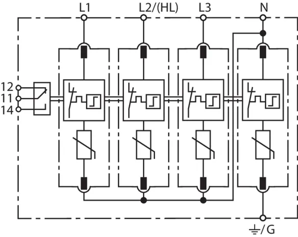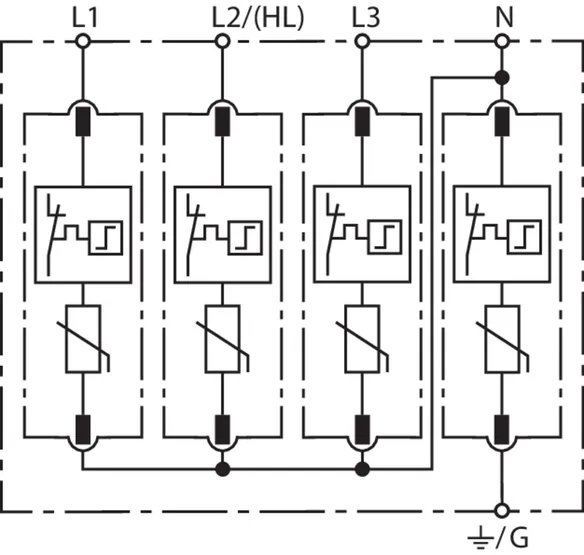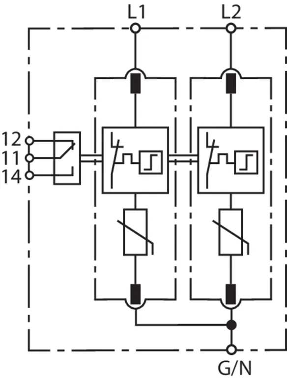| Max. continuous operating voltage AC [L-N] / [H-N] / [L-G] / [H-G] / [L-L] / [L-H] / [N-G] | 230 V a.c. / 275 V a.c. / 410 V a.c. / 455 V a.c. / 460 V a.c. / 505 V a.c. / 180 V a.c. |