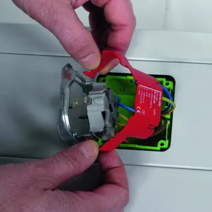 - Plastic snap-on retaining ring for easy installation in already mounted socket outlets