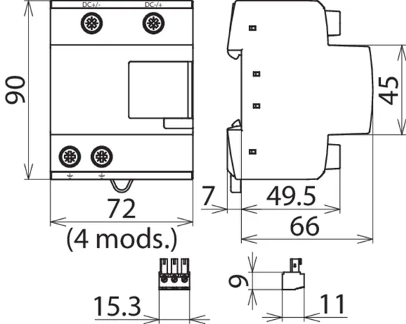 | Total discharge current (10/350 µs) [DC+/DC- -> PE] (Itotal ) | 12.5 kA |
