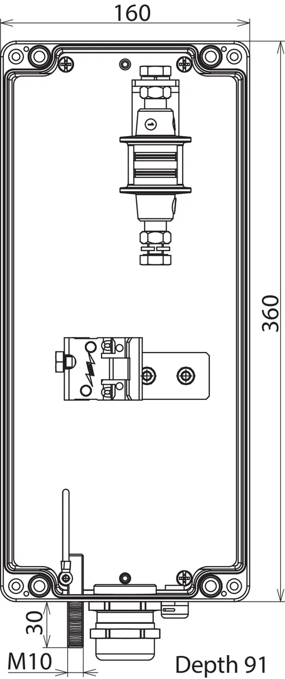 Connection of enclosure: screw M10x25 mm and spring washer, shield terminal