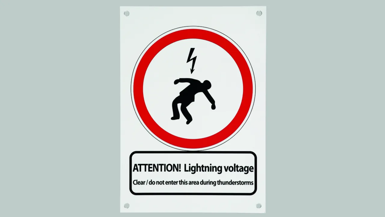 "ACHTUNG! Blitzspannung Bei Gewitter Bereich räumen / nicht betreten"